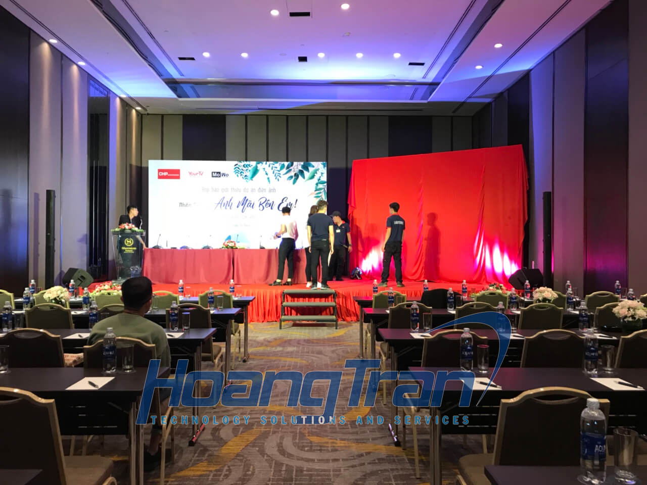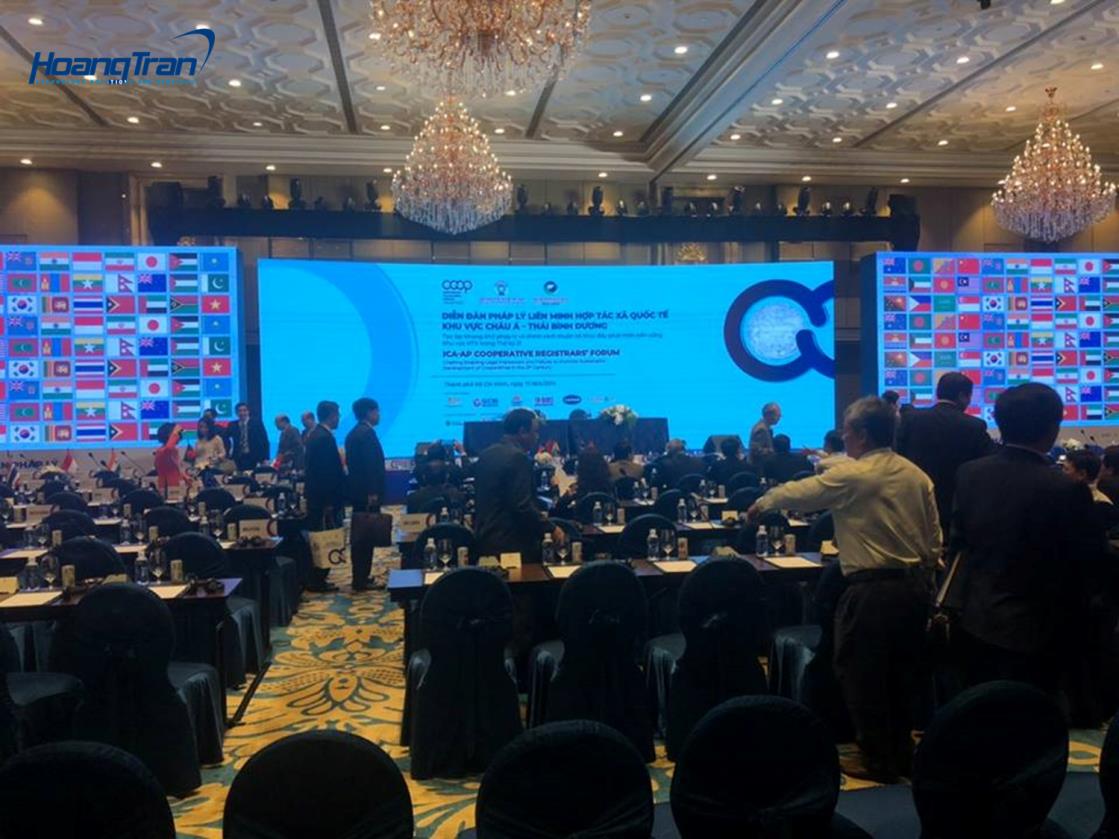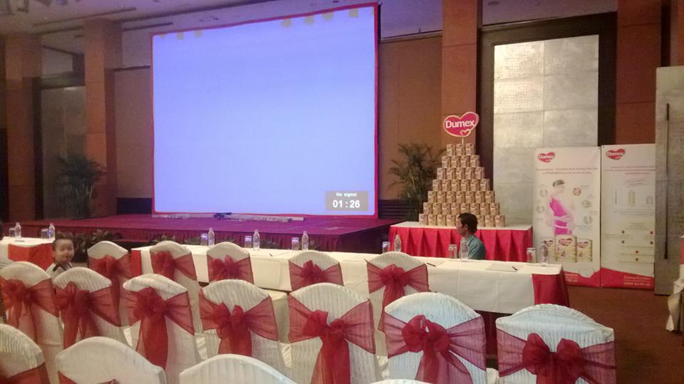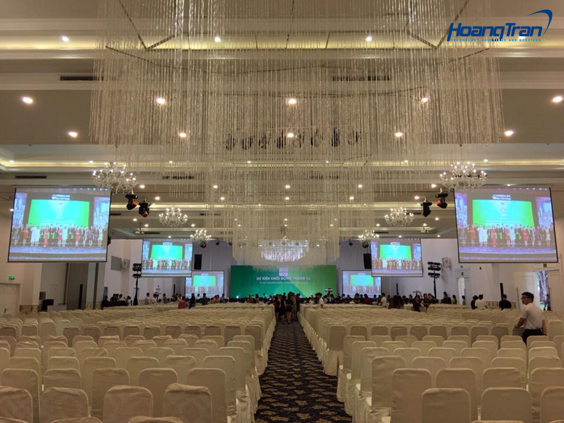 Công ty Hoàng Trần hân hạnh cung cấp máy chiếu 4500 Ansilumen và màn chiếu cho sự kiện này.
